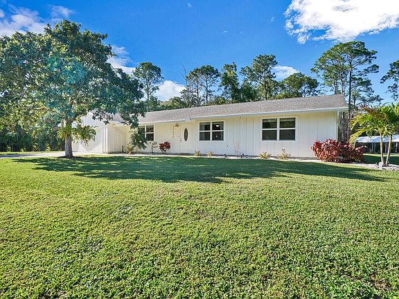 Are you ready to enjoy the LIFESTYLE and FREEDOM of Jupiter Farms? Then this very nicely maintained, clean, and move in ready home is for you! 3 bedroom 2 bathroom split plan home with 2 car garage, large screened in patio, and a convenient private office is located on a paved road surrounded by beautiful homes. This corner lot property is completely fenced with a large circular driveway in front providing easy access in and out PLUS a convenient third gated driveway in the back for RV/Boat parking. Home has updated kitchen and bathrooms, stainless steel appliances, BRAND NEW water purification system. Surrounded by preserves, this property is only an 8 minute drive to Turnpike/I95, 5 minutes to Publix and other shopping, 17 minutes to Jupiter beaches. Boundary for A++ schools.
