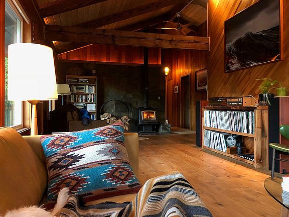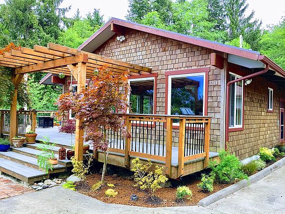 Classic northwest style simple cabin interior, almost a full acre lot with trees, creek and native plantings for a great sense of privacy. New kitchen in 2015, hardwood floors, 2 bedrooms plus a workshop garage, wood fired sauna, outdoor shower, fire pit with wood storage and plumbed outdoor sink and cleaning station. Sunny 900 ft2 wrap around deck.