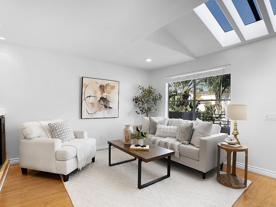 Welcome to this meticulously maintained 2-bedroom, 2.5-bath condo in the highly sought after Elysian community! This two-story home offers a bright, airy interior with an open concept layout designed for modern living. Step inside to gleaming hardwood floors, fresh paint, and abundant natural light. The spacious living and dining areas flow seamlessly to a serene patio perfect for relaxing or entertaining. The updated kitchen features stainless steel appliances, ample counter space, and a large pantry. A convenient half bath is located on the main floor for guests. Upstairs, the primary suite boasts vaulted ceilings, dual closets, and a beautifully tiled shower. The second bedroom includes a large mirrored closet, en-suite bathroom, and French doors that open to unobstructed views and year-round breezes. Additional features include a two-car tandem garage, full-size laundry near the bedrooms, central heating and air conditioning, a cozy gas fireplace, and plenty of storage throughout. Enjoy resort-style amenities with two pools, a spa, and a fully equipped gym. Located in the heart of Carmel Valley, minutes from The Bay Club, Del Mar Highlands, One Paseo, parks, and beaches. Walk to top-rated schools like Carmel Creek Elementary, Carmel Valley Middle School, and Torrey Pines High School, with easy freeway access. Homes in the Elysian community are rarely available so don’t miss this rare opportunity to own a turnkey residence in one of Carmel Valley’s most desirable neighborhoods. Submit your offer today!
