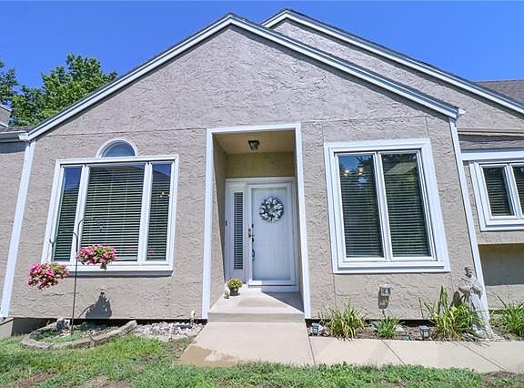 Carefree, affordable living in this hard to find rev. 1.5 story.3 bedrooms and 3 full baths! Fantastic location with easy access to shops, amazing restaurants, St. Luke's hospital and Costco with easy highway access. A short walk to trails and pool. Very loved and maintained Tons of natural light from large windows. Open Light & Bright! 2 bedrooms on main floor and main floor laundry. Primary bedroom offers walk-in closet. and 2nd bedroom offer walk in closet as well. All appliances stay with home. Lower level has an amazing built-in bar in family room and a Private 3rd bedroom and full bath. Amazing storage as well. Enjoy the oversized screened in porch to host family or enjoy a quiet cup of coffee or watch the sunset. Beautiful landscaped yard. HOA covers community pool, Snow removal, lawn care and landscaping. In the Blue Valley school district.