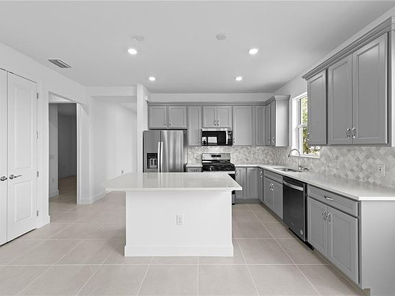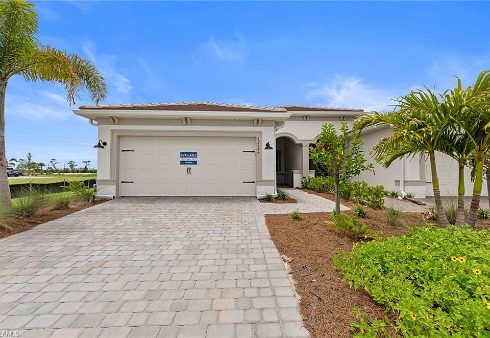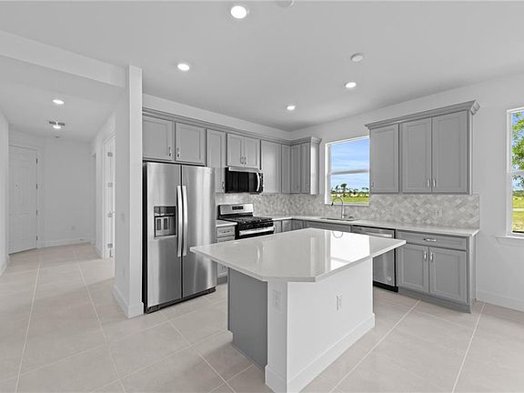 This Ellenwood floorplan is an attached villa offering 2 bedrooms, 2 bathrooms, and a versatile den, designed with comfort and style in mind. Notable upgrades include an outdoor kitchen pre-plumb, a convenient garage sink, gray cabinets with quartz countertops, and 22"×22" tile flooring throughout. The home also features 8' interior doors, upgraded 5" baseboards, a durable tile roof, and impact windows for added security and energy efficiency. This beautifully appointed villa blends modern finishes with low-maintenance living. TerraWalk is a gated community located in Babcock Ranch with a private 8 acres amenity campus featuring internal walking trails throughout the community, pool with spa, fire pit lounge, pickleball courts, tennis courts, bocce ball courts, event lawn, dog park, clubhouse fitness center, exercise studio, locker rooms, card rooms, large community room, catering kitchen, indoor/outdoor social lounge, plus an outdoor bar and grill. Residents will enjoy expansive green space, abundant amenities, and utility-scale solar generation.