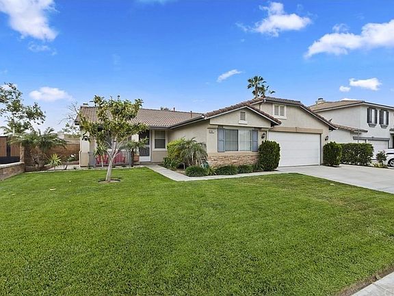 Welcome to this wonderful Single Story home located on a cul-de-sac in Eastvale. This is a Clean, Neat and Move in Ready 5 bedroom, 2 bath home! There is a double door bedroom/office in the front off the living room! In the kitchen there is a Long Corian countertop over looking the family room. Kitchen has a nice area for dining. Washer and Dryer hook ups are in a double door entry in the hall way. Outside enjoy the water fountain and covered patio. Along side of the house there is an established tangelo tree and a shed for storage. The length of the side is concrete for easy access to park a car or other toys. Two car garage with a wide drive way. This home is close to schools, parks, shopping, dinning and entertainment. Renter is responsible for all utilities. Pets are allowed in the backyard only. No smoking inside the property. Due at signing 3 months rent deposit plus first month rent $6400 + $3200.