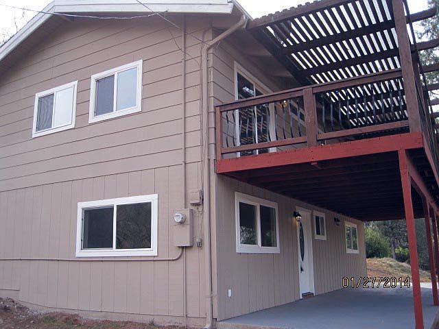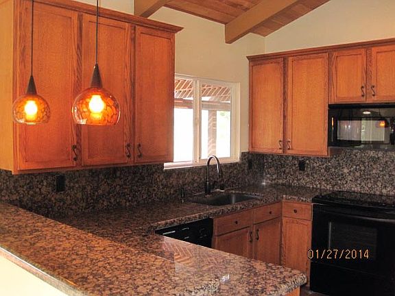 Brand new remodel makes it shine, the kitchen is really nice with cross cut oak cabinets, granite. The fireplace in living room with vaulted beamed ceiling adds charm. Master upstairs with kitchen and liv room, 2 bedrooms downstairs with bath. Full length covered deck. Nice garage, paved driveway, flat area for a lawn. Set very well back from road for privacy and quiet. Close to good local schools and shopping.