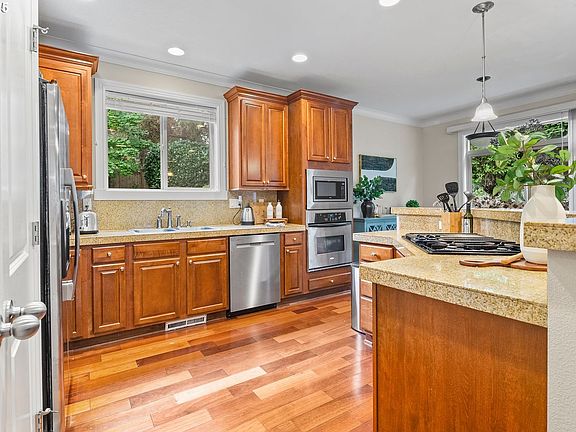 Welcome to this beautiful Lake Oswego home tucked away on a quiet cul-de-sac. Soaring ceilings and large windows fill the home with natural light, offering an open, airy layout while still providing spaces for the whole family. The gourmet kitchen features custom cabinetry, granite counters, and stainless steel appliances—perfect for both everyday living and entertaining. Three gas fireplaces create warmth and character throughout. Upstairs, you’ll find four spacious bedrooms plus a versatile bonus room. The vaulted primary suite is a private sanctuary with its own fireplace, two walk-in closets, soaking tub, and double vanities. A main-level bedroom/office adds flexibility for guests, multigenerational living, or remote work. Outside, enjoy a private, low-maintenance yard with patio and grass area. Located in highly rated school districts and just minutes from shopping, dining, and commuter routes—with no HOA!