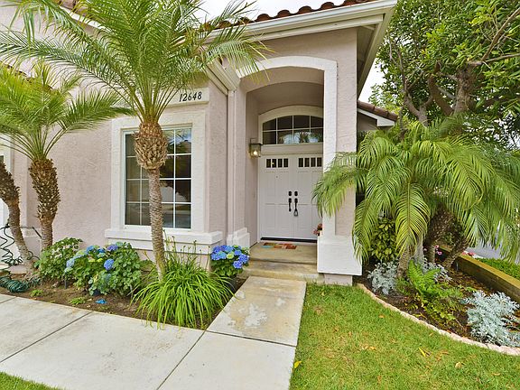 Fantastic corner lot location at guard gated Palacio Del Mar in Carmel Valley w/resort-like amenities. This beautiful house has cherry wood flooring throughout, custom window treatments and neutral finishes...shows wonderfully. Open floor plan living/dining w/wood window shutters & plenty of room for family gatherings. Nicely appointed kitchen has abundance of white paneled cabinetry, granite counters, stainless upgraded appliances, center island & eat-in breakfast area. The adjoining family room w/gorgeous cherry wood clad fireplace & large windows overlooking the back yard. The stunning master suite has vaulted ceilings, window shutters, slider out to patio & oversized walk-in closet with built-ins. Large master bathroom is lovely w/dual sinks, large walk-in shower & separate soaking tub. Bedrooms 2 & 3 are bright & roomy w/plenty of closet space. 2nd bath has dual sinks, granite counters & separate tub/shower combo area. Bedroom 4 is perfectly situated off living room for a home office of guest suite w/it's own full bath in neutral white finishes & walk-in shower. Outdoors has a wonderfully maintained yard w/large patio space, 2 wood patio covers and mature landscaping. Palacio Del Mar is a luxury guarded community w/onsite security, golf course, gorgeous pools, tennis courts, playground and clubhouse. Award winning school district, fabulous shopping, the beach and Grand Del Mar Resort are just moments away from this wonderfully located home. A MUST SEE.