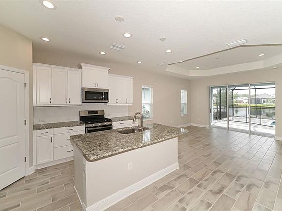 Under Construction. Enjoy this wonderful 3-bedroom, den, 2 bath home with 2-car garage across 1,768 sq. ft. of open living space. The island style home really gives the Florida feel. Inside the home you'll find recessed ceiling lighting, all-new stainless steel appliances including a gas stove and wood look tile, under cabinet LED lights, quartz counter tops, and light cabinetry with back splash. The master bedroom includes dual sink vanities and private water closet. A large walk-in closet completes the room. The second and third bedrooms are located by an additional second bath. Coffered ceiling in the great room. This home also includes a pool with outdoor kitchen rough in, perfect for the Florida lifestyle.