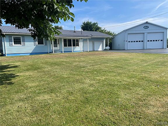 Solid ranch style house with one very large garage that housed two milk hauling tractor trailers. Heated and lots of room. Second smaller garage for storage and then of course an attached to the house a 2 stall garage. Large paved parking area and driveway. 3 bedrooms and a full bath on 1st floor level. Kitchen has been updated. There is an oversized screened in porch off the kitchen on the back of the house. The basement does need some love but definitely potential for more finished space. When the 3 kids were growing up the parents had their bedroom in the basement. There is a 1/2 bath down. Let's not forget the inground pool with wrought iron fence around it. Pool house on the back of the attached garage stores all your pool supplies. Country living but close to 81, routes 3 and 11.