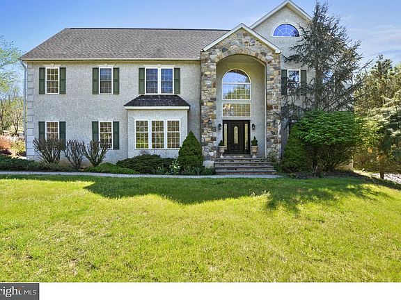 Welcome to Paradise! At the end of a private drive, your handsome home awaits. Enter into the sun drenched foyer, adorned with shadow boxes, dental moulding and palladium windows. The warm and wonderful living room, flowing into the spacious dining room, with dental moulding, trey ceiling, hardwood floors, perfect for entertaining. Continuing into the large, eat-in kitchen, which has all SS appliances, granite countertops, full pantry, and many windows looking out onto the park like back yard. Enjoy hanging with friends and loved ones in the expansive family room, with hardwood floors, unique stone gas fireplace, palladium windows, with an entrance to the gorgeous stone patio. The first floor also boasts a full office, laundry, powder room, and plenty of closet space. Going up the beautiful staircase onto the second floor, the master bedroom, with gas fireplace, sitting area, hardwood floors, two closets feels like a wonderful retreat. The ensuite master bathroom, is spa like with heated floors, a double sink vanity, tile shower and tub. Walking down the large hallway with hardwood floors, three additional bedrooms, two full bathrooms and a large bonus room, complete the second floor. The backyard is truly magical, with large stone patio, gazebo, stone waterfall, play-set and lush greenery. The finished lower level has a full kitchen and much more. Prime location, 15 minutes from Philadelphia International Airport and 25 minutes to Center City Philadelphia!