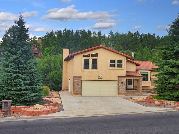 Rare opportunity for a completely remodeled home in the heart of Rockrimmon close to esteemed District 20 Foothills Elementary School! This stunning property boasts lots of natural light and is situated on a large, level lot with huge pine trees and beautiful landscaping! This entire home has been recently updated to include all new high quality kitchen and baths with upgraded tile and custom finishes, recently finished basement with addition of a large rec room, and all new flooring, lighting, carpet and landscaping! Other features of this outstanding property include* low maintenance stucco exterior with concrete tile roof * all brand new utilities featuring furnace with upgraded steam humidifier, air conditioning system, and hot water heater * all new interior paint and high end baseboards * new custom kitchen with granite, newer appliances and beautiful cabinetry with bonus pantry in hallway * recently remodeled and spacious sun room with views of scenic yard off kitchen * entry foyer with French doors * freshly painted oversized 2 car garage with bonus area and new doors to house and yard * recently refinished deck overlooking backyard * newer vinyl windows * oversized master suite with vaulted ceiling, his 'n hers closets and custom 5pc master bath with high end tile to include 2 vanities, walk in shower and large soaking tub * formal dining room with custom tile flooring * formal living room with large bay window * new interior and exterior lighting * skylight in upper level 2nd bath * welcoming family room with stacked stone tile fireplace and walk-out door to spacious deck * crawl space for bonus storage * Heated Bathroom Floors! In great location close to D-20 schools, parks, shopping and hiking with easy access to I-25, downtown Colorado Springs and Denver!