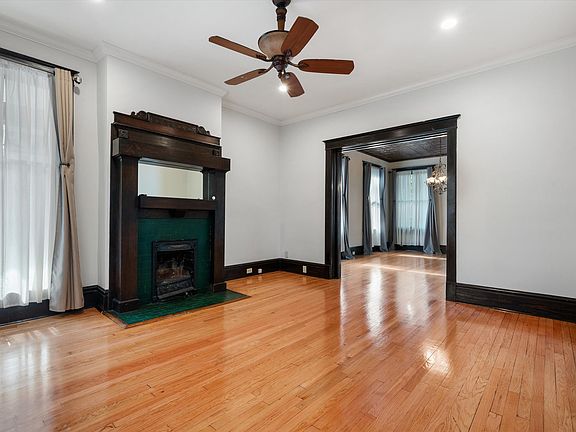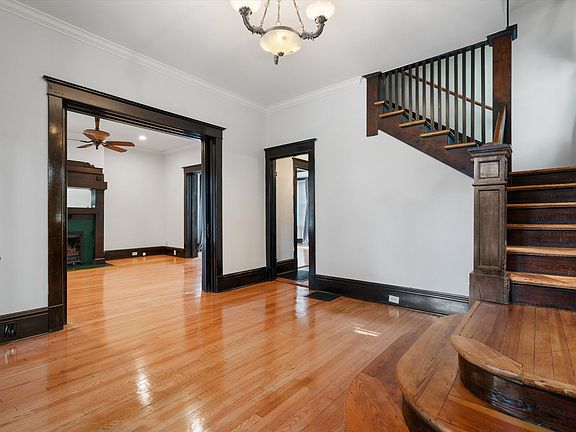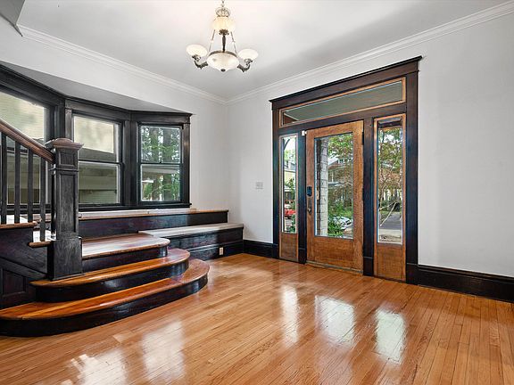 This historic home has a warm welcoming feel, soaring ceilings, perfectly preserved original architectural finishes, loads of storage & natural light. Primary BR with impressive wrap around bath and separate dressing room. Kitchen has large pantry, double ovens, stainless steel appliances, gas range and a breakfast area. Spacious third story can be used as play, media, home office, 4th BR or additional living rm. Landscaped yard, wrap around porch, and massive fenced back yard with iron gate.