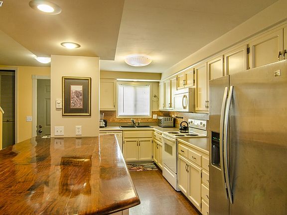 This spacious and fabulous updated condo has nature views and a private back patio overlooking Amazon Creek. Both bedrooms upstairs have two closets. Lots of storage throughout. Dont miss the washer and dryer cleverly built into the kitchen island. Lovely remodeled kitchen with cork floors on main level. This gem won't last long!