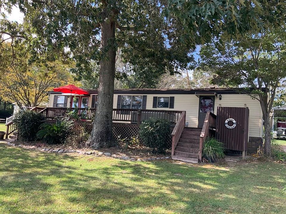 Prime waterfront location on White Oak Creek. Deep water, 3BR/ 2BA with screen porch, large open deck, detached garage/workshop, boat garage, and dbl carport.