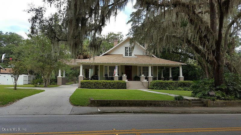 This stunning fully restored 1918 Craftsman style home is a must see! Located on SE Fort King Street in beautiful historic downtown Ocala. An estimated 5,600 +/- SF to spread out over two stories. Home has 6 current bedrooms, with potential for 6+ as the layout allows for multiple usages in several rooms. Very large rooms! 5 Full baths that have all been updated but still retain their charm, plus 1/2 bath. Kitchen, HVAC, Plumbing, Electrical have all been updated. Amazing original details and renovations befitting the style of home are a seamless blend of old and new. Rooms to the sides down a wide central hallway, transom windows, glassed doors, multiple fireplaces. And an elevator! Large yard has back gated entrance, a carriage house with a 3 bay garage, 2 bedrooms and a full bath plus kitchenette and bonus bunk alcove over the carriage house. Huge multilevel party patio. Great condition!