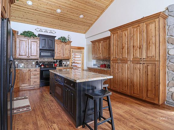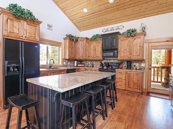 Located in Duck Creek Pines this 3740 sq ft cabin has a spacious floor plan with bold timber beams through out. Huge living room has floor to vaulted ceiling wall of windows and features stunning rock propane fireplace. A stone archway leads into lovely dining area and open upgraded kitchen with island & bar seating. Kitchen opens to deck with staircase down to back parking area to bring your groceries right into kitchen! Master suite on main floor with large walk in closet & spacious bathroom featuring jacuzzi tub. The master bedroom, living room and dining area all open onto a wrap around front trex deck. 2 guest bedrooms & full bath complete main floor. Upper level houses a 522 sq ft open loft with TV and plenty of room for kids fun time. Loft goes out to quiet deck. The lower entry level has a great family room, 2 bedrooms, full bath, laundry/mechanical room with propane furnace & water heater. Cabin has 2 A/C units. Two 424 sq ft garages on each side of lower level. One has in & our doors for your toys. 2 lots total 1.89 acres a mostly flat, treed lot with easy access from 2 roads & graveled driveways connecting them all. Secluded fire pit outside front entry to enjoy