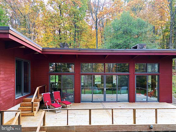 Welcome to this spectacular MID-CENTURY MODERN architectural gem! Tucked down a private drive in complete privacy, you'll be captivated by this stunning Jericho Mountain setting. Situated midway between New Hope and Newtown, this 6.2 acre wooded lot offers stunning four-season views, relaxing solitude, and proximity to everyday conveniences. Entering the stunning Great Room, you will be taken by the soaring wood ceiling, massive exposed structural beams, and expansive glassline offering breathtaking views of the sunny lawn bordered by woods. The clean lines, period light fixtures, and wood-burning stone fireplace create a wonderful palate for your furnishings and artwork. Step out on the expansive deck to experience the peace and beauty of this stunning location. The adjacent Dining Room provides connectivity to the Great Room, views to the wooded exterior, and is the perfect gathering spot for family and friends. The large Kitchen with original Mid-Century cabinetry features abundant work surfaces and storage, with plenty of room for table or island. A convenient pass-though to the Dining Room is a nod to the architectural purity of this home. A convenient Laundry Room is just off the Kitchen. A beautifully updated main floor Powder Room with exposed stone wall adds to your convenience. Upstairs a half flight of stairs, you'll find an expansive Den or Office, with period built-ins, outdoor views, and access to the deck. A perfect space for relaxation, working, or working out. The adjacent Primary Bedroom offers abundant closet space, period built-ins, and charming desk nook with beautiful views. The stunning Primary Bath with high-end finishes offers a lux hotel-quality experience with double-sink vanity, spacious shower, and separate soaking tub. A spiral staircase leads you to the walk-out lower level, featuring a Recreation room perfect for games, hobbies, or lounging. Two large bedrooms and updated full bath make this level a wonderful private space perfect for guests or family members. All updates to this home have been done with great respect for the architectural purity of the Mid-Century design. Idyllic indoor-outdoor living.... easy multi-room access to the expansive deck, with relaxed transition to a moss-punctuated stone patio with outdoor fireplace....the perfect gathering spot on chilly evenings! This 5-star location is convenient to Princeton, Philadelphia, and New York via road or rail. This is a very special property in a very special location.... an opportunity like this presents itself very rarely. Make your appointment to see it today.