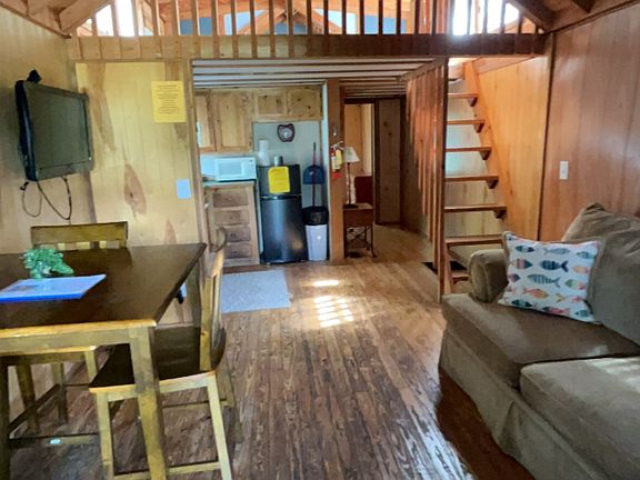 Fully furnished 1 bathroom/w loft space cabin with a fridge, stove top, microwave, coffee pot, dishes, pans, utensils, and an outdoor grill. Located right on the Tennessee river, Hales Bar also has a marina with year-around boat rentals, our tasting room for Dam Whiskey with live music on Saturday nights during the summer, and access to the pool during the summer months. There are docks to cast a line off year-around, along with an RV park (because once you move here, everyone is going to want to come visit you!). Conveniently located just a short drive from Chattanooga, Jasper, and Kimball, this cabin offers the perfect balance of peaceful lakeside living with easy access to nearby towns and amenities.