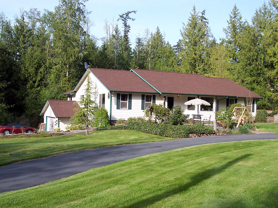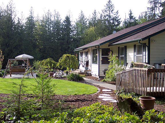 Extraordinary custom home on 3.5 private acres. Only 5 minutes to Sequim. Large standing timber surround a beautiful park-like setting with paved circular driveway. An orchard, raised garden beds and fully landscaped yard for the gardener in you. The kitchen is complete with dual ovens, island sink and plenty of counter and cabinet space. From the master bedroom, step out the French doors onto a private deck, and into the full-size hot tub. The lower level boasts a separate patio entrance for an ADU or home based business potential with additional parking.