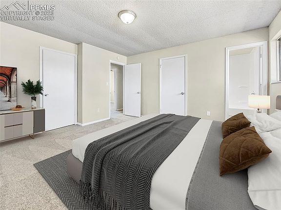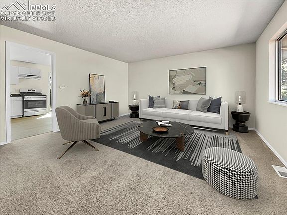 Welcome home to this recently renovated 4 bedroom, 2 bath stunner in the Pikes Peak Panorama community. You'll appreciate the maintenance-free landscaping and great curb appeal. Step inside and note the neutral flooring and soothing color palette throughout. The kitchen boasts light and bright cabinetry, new stainless appliances, and a redesigned layout providing direct access to the backyard. You won’t want to leave the serene primary suite, the perfect space to relax. The main bathroom features a new double vanity, as well as new mirrors, lighting, and fixtures. The fenced in backyard gives you the perfect private area to enjoy the outdoors. Come see for yourself! This home has been virtually staged to illustrate its potential! Thanks for viewing!