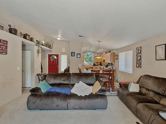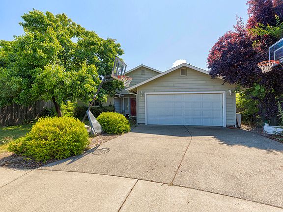 High vaulted ceilings and many large windows keep the living room bright and inviting. Very user-friendly kitchen with so many cabinets, and a huge kitchen window overlooking the front yard on a nice, quiet cul-de-sac lend to the peaceful feeling of this 3 bedroom 2 bath home relatively close to South middle school with easy access to shopping, the hospital, and all Grants Pass has to offer without having to drive down Redwood Highway. On over 1/5 of an acre with a covered back patio there is space to spread out.