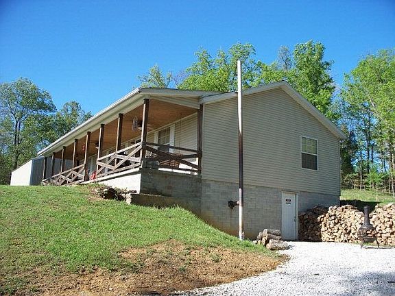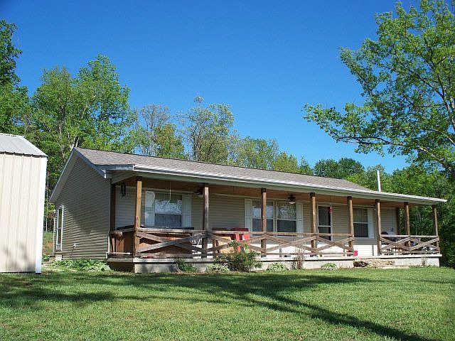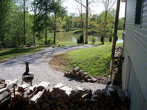 Private and peaceful, with over 21 mostly wooded acres! Three bedrooms, two full baths, and a full, walk-out basement with wood-burning stove and roughed-in bathroom. Basement does have finished storage areas. 32 x 32 detached garage with concrete flooring. Beautiful lake in front of home owned by neighbor, but the view is fantastic! There is a pond on the property.