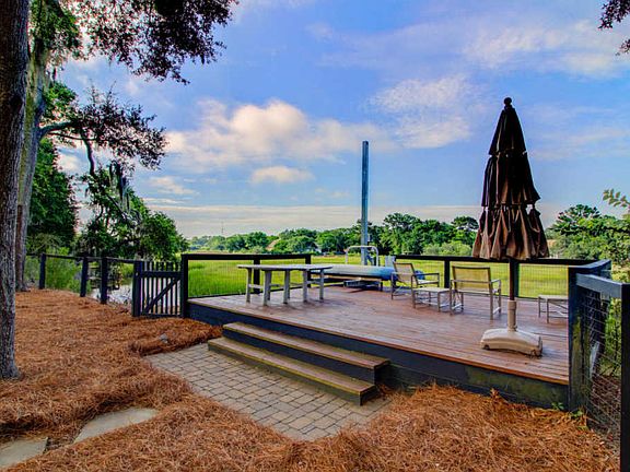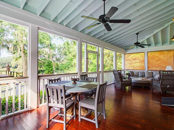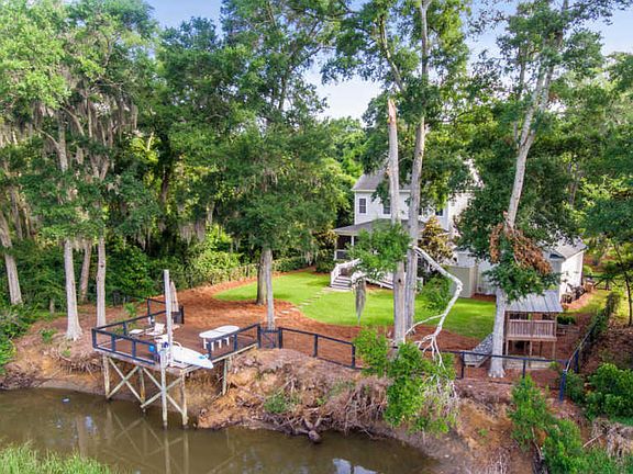 Elegant Lowcountry home on a tidal creek with private dock just 10 minutes from downtown! Take in the stunning marsh views from your expansive screened porch or as you sit on your private deck under majestic oaks. Kayak through the marsh and take in the wildlife. No need to drag your kayak down to the water. The owner has installed a Hi-Tide boat lift with a 1500lb capacity for your convenience. This home was made for entertaining family and friends in style and comfort!The beauty of this custom home is in its details - 10ft ceilings and Australian Cypress wood flooring throughout the first floor and a decorative brick wall in the dining room give the home unique character. The kitchen is a chef's delight with stainless steel Kitchen Aid double ovens, gas cook top, built in microwave and high power vent hood. Elegantly outfitted with Delicatus Granite counter tops and Java Glaze Maple cabinetry with numerous glass cabinet doors, the kitchen is open to the living room so you can entertain and cook simultaneously. The spacious Master suite on the first floor is a private oasis - with a jetted tub, walk-in shower with wall body sprays and 20in tile in the en suite bath. The second floor has 4 nicely sized bedrooms and two full baths. All the rooms surround an open living space with handsome custom built-in shelves. Thoughtful details include built-in surround sound in family room, screened porch, master bedroom and bath, and upstairs great room, a tankless water heater, R-38 insulation in attic, radiant barrier roof sheathing and structured wiring. Recent upgrades include new fencing, new gutters with leaf guard, GE Profile washer and dryer, and new dishwasher. Don't miss the opportunity to make this Lowcountry oasis your new home!