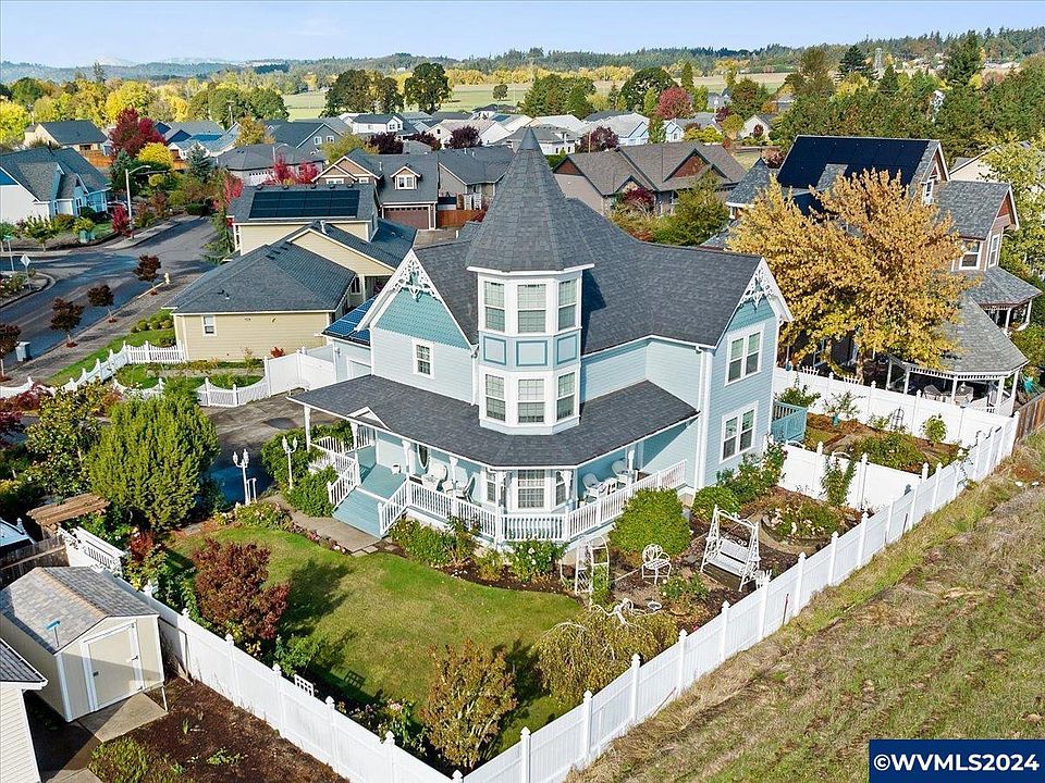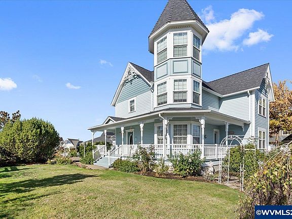 This gorgeous Victorian style home was built in 1999. Meticulously maintained to align with the Victorian style, this home is fully landscaped with multiple seating areas to match the victorian gardens of a bygone era. Boasting hardwood floors, clawfoot tub, and wrap around porch, this house combines classic style with modern convenience. The primary suite has a beautiful turret with remote control shades, a must see!