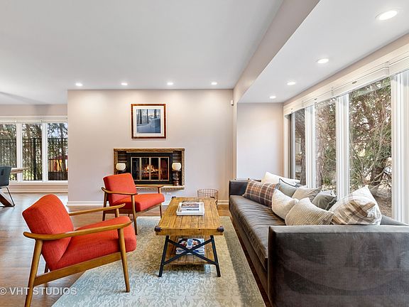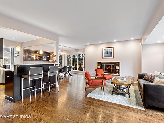 This meticulously maintained, fully updated Deerfield tri-level is the epitome of sophistication, and the true gem of its neighborhood! Stylish hardwood floors greet you in the warm and inviting foyer and living room, and open to a bright Chef's kitchen featuring an updated suite of GE SS appliances and dazzling quartz countertops. A built-in granite-topped buffet is convenient for serving, while the chalkboard-faced pantry is perfect for storage. Huge windows bathe the oversized family room in sunlight year round. The vaulted ceilings and working gas fireplace add to the charm of this cozy home, while large closets in the back of the room add even more convenient storage. A beverage station, complete with a new Whirlpool mini fridge and full bathroom are located across from sliders that grant access to the large deck and fully fenced backyard. Upstairs, the Primary bedroom features an oversized built-in wardrobe. Two of the additional three bedrooms can be found on the upper level, along with a full bathroom, complete with a double sink. The fourth bedroom is part of a unique lower-level suite, that can function as a spacious bedroom/guest room/teen or helper suite, complete with full bathroom and adjacent to a rec room/den/office. Doing laundry is convenient with the large capacity washer and dryer on the lower level. The chimney was tuckpointed in 2019, 2 New AC units were installed in 2018, 2017 along with a new utility sink and furnace that same year. Smart home security features an ADT security system, motion sensors and an installed ring camera. The home also has two furnaces and two thermostats, one of which is an ecobee. A new roof was put over the garage in 2016, and the garage access is covered and only steps from the front door. In the front yard, you'll find a beautiful pear tree planted earlier this year. Located close to Walden school and neighborhood parks, you won't want to miss this!