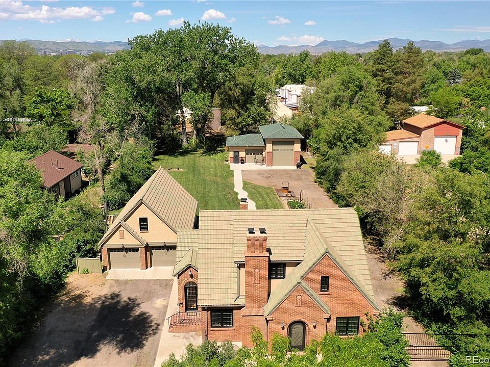 Welcome to your own little retreat just minutes outside of the city. The old world charm and character meets modern day amenities in this gorgeous brick Tudor style home. Built in 1928 this home has been meticulously maintained featuring original built-ins, beautiful wood details, and sunny main floor living. The kitchen boasts custom cabinetry, high end appliances and won several awards for "Best Kitchen Renovation" in 2006. The main floor master suite is truly a space that you can shut out the world and just relax. A large bedroom area flows into a custom master bathroom with walk in shower, double vanities, walk through closet and access to the back deck. Not to mention the additional laundry. There are 2 large bedrooms and a full bathroom upstairs. The upstairs level has original architectural coved ceiling details and beautiful built-ins. The finished basement features the second fireplace, full bathroom, and endless possibilities for a rec space, or extra guest room. There is also walk-out access from the basement through the second laundry room. The house sits on almost 3/4 of an acre with raised garden beds, mature trees and a stunning backyard. The lot provides an abundance of space to entertain, throw a ball for the dogs or just hang out. There is a 3 car tandem detached garage with a bonus loft space above perfect for an art studio, secret getaway or just extra storage. On the back half of the lot there is a very large second garage featuring a 14' RV garage door. This space is perfect to store all of the toys, or have an amazing man cave. As if all of these amenities and features weren't enough there is a 2 stall chicken coop also on the back side of the property. You can have horses, chickens, goats a whole little farm! The location is perfectly situated between Belmar and Edgewater. Easy access to downtown Denver, shopping, restaurants, and Light Rail. Also, walking distance to Lakewood Country Club!