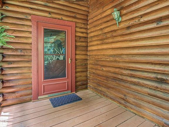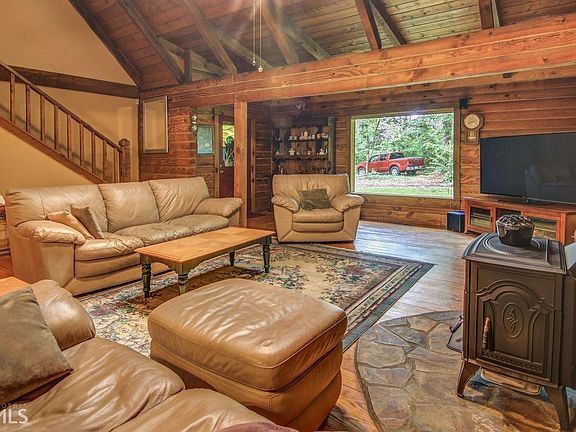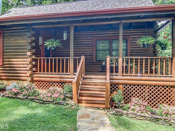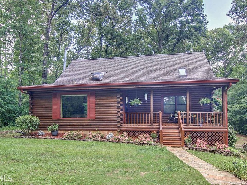 Beautiful true log home with custom finishes on private, wooded lot in popular River Cove. This home features an incredible, open floor-plan with large vaulted great room, kitchen with stainless steel appliances and lots of counterspace, big island, real hardwood floors, screen porch with built-in hot tub plus a deck over looking the serene, private backyard. Brand new roof and updated master bath with tiled shower. Priced below recent appraisal.
