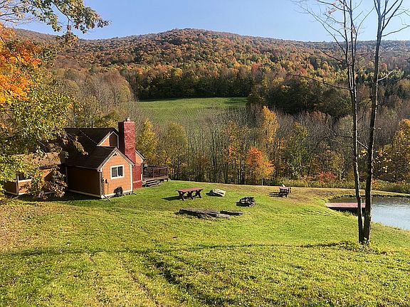 Nestled on a mountainside at the end of a beautiful private creekside drive. Surrounded by hundreds of acres of woods and fields. Sounds of breezes in the trees, birds singing, and water running over the rocks in the stream beside the property. Complete privacy, yet only minutes to the historic village of Roxbury. Rustic cabin feel with many modern updates.
