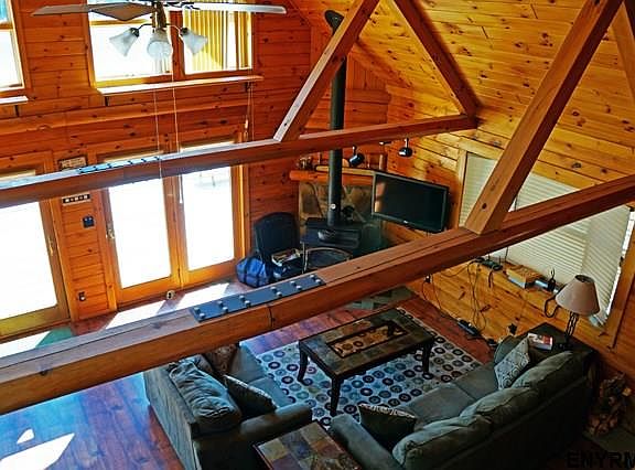 Wonderful Lakefront Beaver Mountain Log Home located at Sleepy Hollow Lake. This Home features a great room with cathedral ceilings and a wood stove, a loft that overlooks the lake, two brand new decks, a private dock, great landscaping, central a/c, 4 bedrooms and 3 1/2 baths. There are many recent updates to the home including the decks, driveway, heat pump and hot water heater. This home is the perfect escape for you and the whole family. Call today for your private showing.