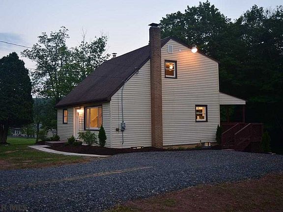 Move-in-ready remodeled Cape Cod style home located on 2 acres with a singing stream to make it so peaceful. The home has new lighting, new flooring throughout, new plumbing, new electrical, new hot water boiler, new heat pump, new central air, new water heater. The first floor has an open floor plan with a new custom kitchen, 1st floor bedroom or flex room with barn door styled access to beautiful newly installed full bath. Kitchen/Living is open concept. There are two large bedrooms w/Full Bath on 2nd level. Lower Level has large laundry, 24x11 Recreational Room or Bedroom. Walk-out basement and covered back porch give you space to entertain, privacy to enjoy nature, the songs of the stream! Pre-approved buyers only. House is not in the flood zone.