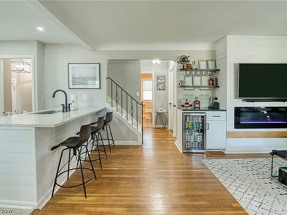 3 bedroom, 2 bathroom fully renovated with brand new kitchen and primary en-suite. Living room features an electric fireplace and built in dry bar with original hardwood floors. Two bedrooms one bathroom on main level. Primary bedroom upstairs with walk in closet and new bathroom with double sinks. New carpet, front windows, appliances, and garage door.