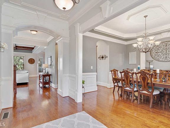 Stunning and spotless- 6BR, 5BA w/ fin. bsmt. Move-in ready home w/ incredible architectural features! New roof! New carpet! Just painted int. New water heater. Gleaming hardwood flrs! Great Rm w/ built-in bookshelves, stone firepl, coffer ceiling & view to kitchen. Custom kit. boasts granite, tile backsplash, high-end cabinets & SS apps. Office & mudroom. Full BR & BA on main. Double staircase w/wrought iron balusters. Upstairs holds 4 large BRS, huge bonus room great for homeschool, media room, or playroom. Large laundry room upstairs. Master bed/bath w/dual showerheads & Travertine tile. 3-car garage. New deck. Perfect size backyard with new fence. Low maintenance! Swim Tennis Community. Close to schools and Lake Lanier.