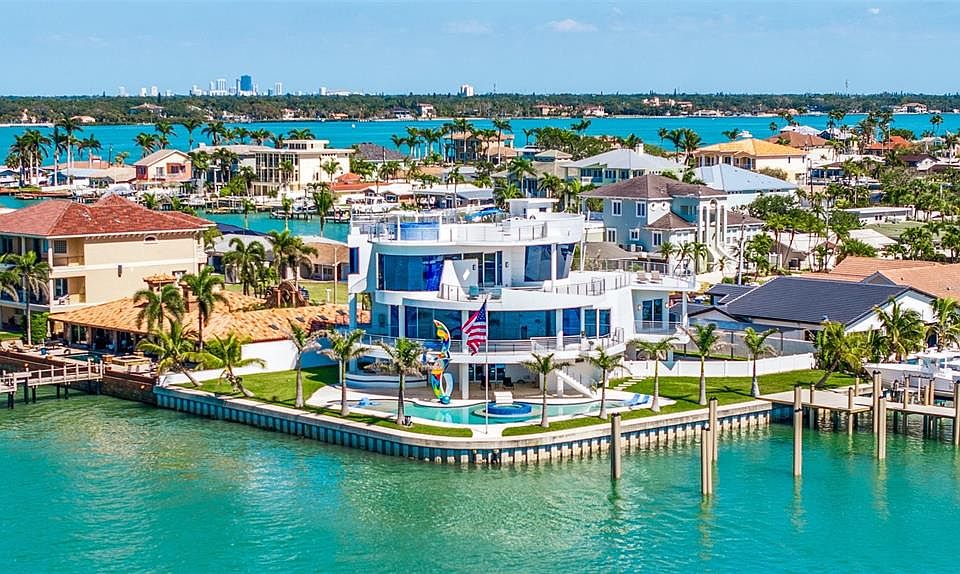 CAT 5 RATED HURRICANE HOME Ultra-Modern 6,428 Sq Ft Concrete Smart Home | Glass Elevator, Solar Average Electric Bill $125/Mo , Dock, Rooftop & Resort-Style Living Crafted with precision and built for a lifestyle of luxury, innovation, and resilience, this 6,428 sq ft all-concrete smart home redefines modern waterfront living. Every element of this architectural masterpiece is engineered for performance, efficiency, and ease—from the poured concrete floors and roof to its expansive balconies that blend indoor and outdoor living. A four-story, oversized glass elevator with a 1,400 lb capacity serves as the home’s vertical centerpiece, connecting each level with sleek sophistication. Power and utility are secured with a 48kW Generac generator, 1,000-gallon inground propane tank, four 200-amp electrical panels (including one dedicated to the generator), and 71 high-efficiency 400-watt solar panels, dramatically reducing monthly electric costs. Security and comfort are built in with 1 1/4” thick, triple-Pane Kevlar-reinforced windows, automated blinds and drapes, and four 5-ton AC heat pump units for zoned climate control. The high-performance design continues outdoors with electric entry gates—featuring a custom modern abstract design, remotes, and a lighted keypad—and two vehicle turntables, eliminating the need to ever back out of the garage. The resort-style 40,000-gallon pool features a beach entry, jacuzzi, laminar jets, and LED lighting, framed by an outdoor kitchen and a 20' modern abstract statue, offering both art and ambiance to your backyard entertaining. Head up to the rooftop jacuzzi with panoramic views, with plumbing already in place for a rooftop kitchen. Built with the waterfront lifestyle in mind, the 265 ft seawall was raised 18” with a 36” concrete cap, leading to a brand-new (2025) dock with a 40,000 lb Decko lift, water, electric, and the capacity to accommodate a 135’ yacht with a 20’ beam. A walkway entry completes the yacht-ready setup. With every square foot thoughtfully designed and fortified, this home offers a level of craftsmanship and innovation rarely seen, delivering the ultimate in smart luxury living.