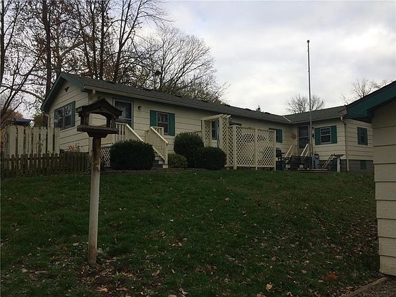 This property is a .6 acre garden that includes a quality-built, clean, almost 1500 sq. ft. home, garage\shop and the beauty of trees, flowers, landscaping, 2 patio areas complete with fire-pit, park benches and a walk-over bridge. The all level home has a spacious eat-in kitchen, beautiful handmade wood cabinets, built in appliances, large living room, 2 + a 3rd non-conforming bedroom that could be used as an office, and 2 full baths. The 2 car detached garage has an insulated\heated workshop, 2 storage sheds. Directions: Where I-29 Exits to 71 Hwy, north of the Jesse James shops, go north on 71 to the first gravel County Road 443 (next to St. Joseph Diesel Business), go West on County Road 443, the house is the first one on the south, sign in the yard.