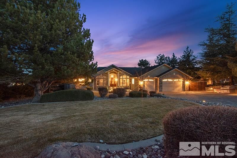Spectacular custom home COMPLETELY REMODEL backing to 9th fairway of Wolf Run golf course. Outstanding views of Virginia range with sparkling night time lights. Interior features include complete new kitchen with lovely new cabinetry, Thermador appliances, beautiful granite counters with contrasting back splash and built in coffee maker. Gorgeous ledger stone wall in formal dining area accents the warmth of this home from the moment you walk in. All new bathrooms to include new cabinets, new counters and, all Lux steel fixtures. New windows on east side of home, new blinds. Preferable floor plan with master and 4th bdrm on north side of house, other rooms on south side. Exterior upgrades include all new stucco, new paint, new roof and paver driveway. Garage has epoxy floor, new cabinets and 220 electrical. New backyard side fencing, new hot water heater, newer furnace. Everything about this home says luxury.. Don't miss your chance to see one of the best in Southwest Reno. So much to appreciate.. PRICED WAY BELOW APPRAISAL. Agents please read private comments.