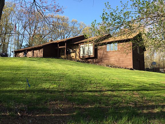 Stunning contemporary home on 8.18 acres of picturesque land! Enjoy upgrades throughout including granite counters, fixtures, SS appls, carpet, bamboo flooring & more! Soaring vaulted ceilings & walls of windows create bright & airy living spaces. The outdoor oasis is complete with a heated in ground pool, 3 stall pole barn, play area, deck, tennis courts & more! Tax Records are incorrect