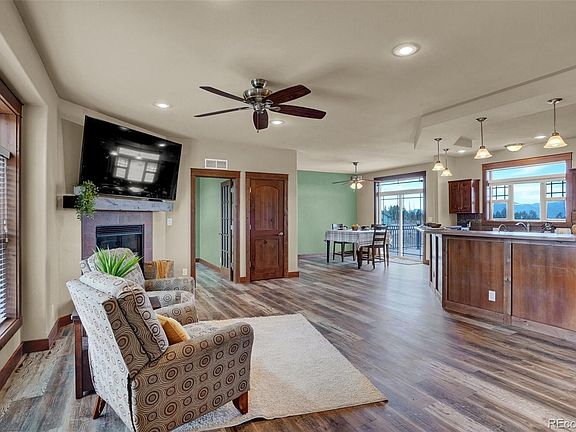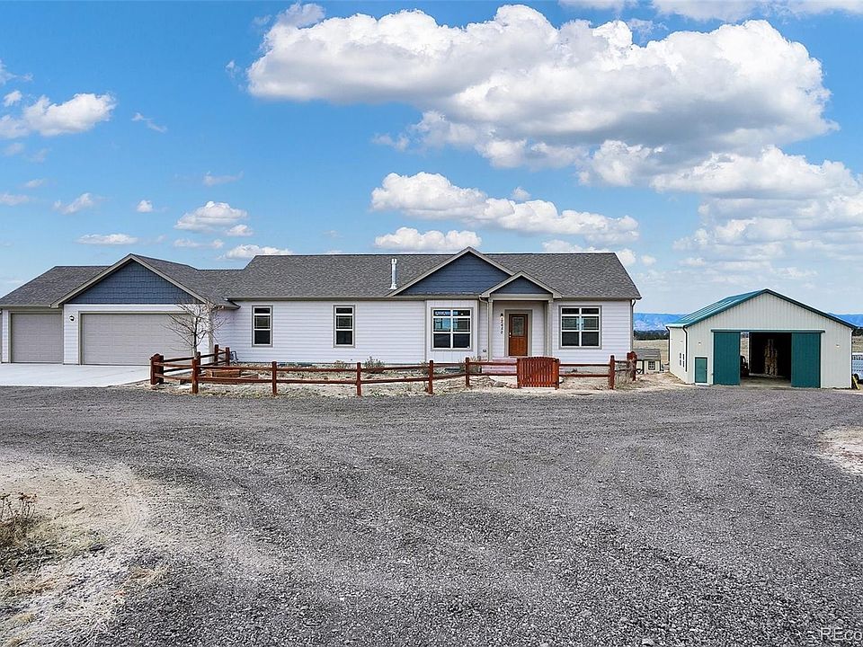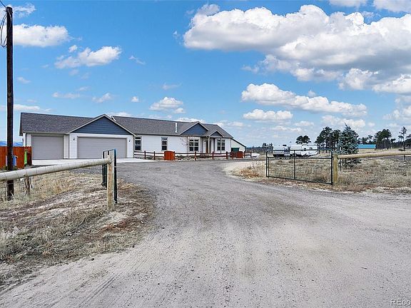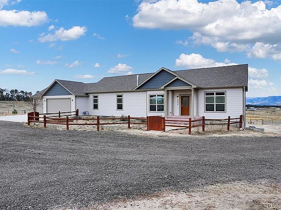 Attention Horse Lovers! This lovely walk-out Ranch Style Home in the heart of Black Forest boasts 5 acres and picturesque views of Pikes Peak and the entire Front Range. Zoned for Horses, this one-of-a-kind property has all the needed amenities for whatever livestock you desire. Enjoy main-level living at it’s best, while treated to breathtaking mountain views from almost anywhere in the home. From the entry you are greeted with a well-designed open concept Great Room, upgraded Kitchen, and large Dining space that walks out to a stamped concrete Patio perfect for grilling and entertaining. The owner’s suite is equipped with a large bedroom, 5-piece bath, and expansive walk-in closet. A spacious home office, a second bedroom, and large laundry w/mudroom round out the main level. Bonus Attic space for additional storage. The large unfinished basement is ready for a custom finish with roughed-in plumbing, and a walk-out to the terraced backyard. All new LVP Flooring and Carpet, Fresh Paint on the exterior and interior of the home, and a newer Septic System (installed in 2021) make this home feel like new. Along with an oversized attached 3-Car Garage, there are two RV storage spaces, each with a 110V outlet to plug in and keep the RV batteries charged. This amazing property comes with several outbuildings, including an impressive 36’x40’ Barn w/ 14’ doors on each end, electricity, and a fully insulated 16’x10’ Tack Room with a concrete floor and heat source; a 12’x16’ shed with insulation and electricity, and a 10’x10’ Chicken Coop. There are 4 water hydrants with electrical outlets strategically placed near various Corrals. The property is fully fenced with a variety of indigenous trees. And when you’re ready for outdoor adventures away from home, Section 16 and the Pineries Open Space are nearby with miles of scenic trails for hiking, biking, and horseback riding!