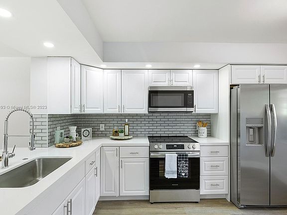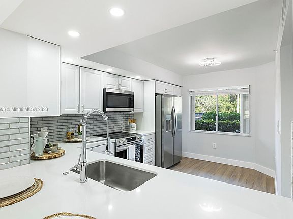 Amazing, spacious & fully remodeled 2/2 condo. Located on the 1st floor, making it extremely accessible. This gorgeous & modern-style unit w/beautiful garden view will welcome you upon entering the front door. Features a modern brand new kitchen w/SS appliances, wood cabinets & quartz countertop. Large bedrooms, completely renovated bathrooms & walk-in closet in master bedroom. Brand new vinyl floors & LED lights throughout the unit. Freshly painted, washer & dryer inside the unit; assigned parking & plenty of guest parking. HOA is $561/month, and includes water, cable, internet, w/endless amenities: a million-dollar clubhouse. Located at Century Village, one of Pembroke Pines' most desirable active adult communities. 55+ next to the shop of Pembroke Gardens and major highways.