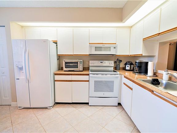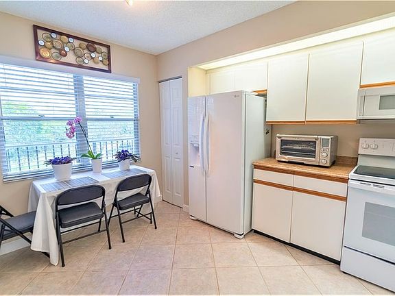 Serene golf course view from this enchanting Jasmine model*Foyer entrance leads to tiled living dining room*Spacious eat in Kitchen, newer all white kitchen appliances replaced 2021*White Side by side refrigerator*Flat top stove*Pass thru counter from Kitchen to Dining area*Washer & Dryer inside unit*Washer dryer replaced 2019*New walk in tub in common bath installed 2021*AC inside & outside replaced 2020*Maintenance includes internet*Building’s Roof replaced 2020*Elevator replaced 2020*Resort living with all the amenities in guard gated golfing community*Association boasts Heated Pool, Fitness Center, Restaurant, Courtesy Bus, Clubhouse, Tennis, Spa Hot tub, Sauna, Billiards, Bike/Jog path*2 maintenance fees, $330 to building association, & $243.70 to master association adding to $573.70*