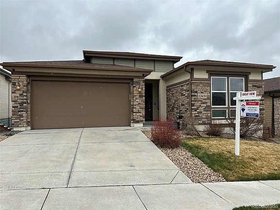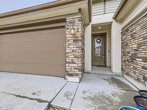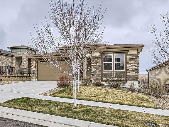 Beautiful Boulder Model in the highly sought after 55 plus active adult Skyestone Neighborhood. Light and bright and fantastic mountain views from many rooms. This home sits high above other homes with a covered upper deck, walkout basement and perfectly located within the community. Large open kitchen with pendant lights and eat in breakfast island, separate dining room and adjacent family room with contemporary cozy gas fireplace. Honeycomb side to side shade shade on the sliding glass doors to the covered deck and sihouette shades as well in the home. Spacious primary bedroom with double sinks, walk-in shower, linen closet and toilet in the adjacent primary bath. 2nd bedroom with full bath included in the front of the home along with a flex room/den/office/library or craft room. Enjoy the extended hardwood floors, leaded front door, tall ceilings and upgraded lighting. Stainlesss steel appliances, gorgeous white cabinets with handles, under cab lighting, rollouts and trash/recycling cabinet. The gorgeous wrought iron railings bring you down to a large walkout basement great for storage or to finish more space. 2 sump pumps, pre plumbing for extra bath. This home is perfect for someone who loves to enjoy Colorado Sunsets from their deck and primary bedroom and living room. The laundry room has a mud bench, hooks and separate area for the washer/dryer and extra cabinets. Only 1 step to the extended garage with over 500 sq ft. Fenced in yard and walkway from the front of the home to the year. Radon Mitigation is included and window well covers. Fenced in backyard with water feature and custom stone wall with custom lights. The Skyestone Lodge offers a Fitness Area, Community Room,Fitness classes, clubs Outdoor Pool , many walking and biking trails and PICKLEBALL COURTS!’ Close to shopping, Denver, Boulder, DIA and restaurants. Don’t miss this great home.