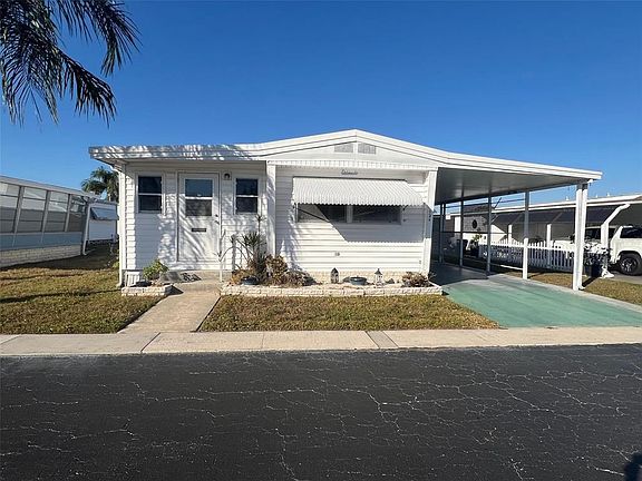 This distinguished 55+ waterfront community offers a variety of planned activities for residents. With a reasonable maintenance fee of $300 per month, residents benefit from sewer, water, garbage collection, and lawn service. Additional amenities include a well-maintained pool, shuffleboard courts, a billiard room, and a boat ramp that provides access to excellent fishing opportunities on Lake Seminole. Interior: Despite its modest exterior, this residence features a remarkably spacious interior that offers both comfort and versatility. In addition to two well-appointed bedrooms and two bathrooms, there is a den suitable for use as a third bedroom, alongside two extensions adaptable to various purposes. The kitchen includes a designated eating area and provides practical functionality. The majority of the home is carpeted and equipped with ceiling fans and vertical blinds. An open-concept floor plan connects the living and dining areas, which may be combined into a large great room if desired. The den is located on one side of the property, while the bedrooms and bathrooms are positioned on the opposite side. One bathroom is fitted with a shower and tub, while the other features a walk-in shower. Both bedrooms are generously sized, offering ample closet space. Exterior: The exterior of this property features vinyl siding, a new roof installed in 2023, a shed equipped with a large water heater, a two-car carport, and an air conditioning unit. Priced competitively at $98,500 (including a share), this home offers plenty of potential for personalization. Feel free to call to schedule a private tour of this property!