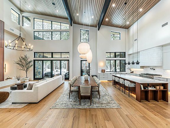 This brand-new, single-story home on the 12th hole of the Jack Nicklaus Signature Course at Old Greenwood offers modern elegance and mountain living at its finest. Fully furnished and ski-season ready, the home features 4 ensuite bedrooms, including a bunkroom, 4.5 baths, and a spacious open floor plan with floor-to ceiling windows showcasing serene golf course views. Highlights include a media room with pool table, private office, and a chef’s kitchen with a walk-in pantry and wet bar—perfect for entertaining. The massive primary closet and RV garage ensure plenty of storage for all your Tahoe toys. Step outside to a covered patio with a cozy living area, built-in grill, firepit, and pass-through bar, ideal for year-round relaxation. Enjoy the convenience of a shuttle to Northstar Ski Resort and optional access to the Tahoe Mountain Club’s world-class amenities. Experience the ultimate in modern mountain living in one of Truckee’s most desirable communities.