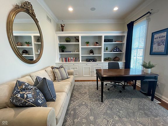 Perfect location overlooking a pond in the heart of the popular Village of WestClay makes this lovely custom built, Italianate a wonderful place to call home. It was one of the Village Style show homes in the grand opening 2000 Indianapolis Monthly Home Show. It is close to restaurants, the Village Center shops and services, The Meeting House and the Provost Clubhouse with clubroom and kitchen, 3 pools, tennis/pickle ball courts, & exercise room. The home has 10 foot ceilings, crown moldings, fluted arch doorways, 2 fireplaces, and several places to enjoy conversation or watch TV. Main floor has hardwoods that flow. thought. It offers a lovely den, formal dining room, great. room with. fireplace and built-in's. Great room is spacious as are two other areas in the basement for entertaining or family fun. Sunny breakfast room is so inviting and adjacent to the kitchen with center island, stainless appliances, double ovens, gas cooktop and walk-in pantry. It also has a powder. room and laundry room. Upstairs offers 3 bedrooms and 2 baths. The lower level has a great room with. daylight windows and a fireplace as well as a rec room with wetter and bar refrigerator, an exercise room that is being used as a bedroom and a full bath. Outdoor paver patio is private and makes a great place for outdoor dining. There is a 3 car garage with customers flooring and a utility sink. This 3 bedroom/ 3.5 bath home is a little gem not to be missed.
