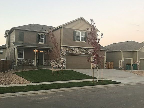 Offering 2.6% to buyers agent... Open concept 2-story home, 3 bedrooms, 2.5 bathrooms, great kitchen with large island perfect for entertaining. Large master suite with roomy 4-piece bathroom and huge walk-in closet! Lovely curb appeal with front porch, stone fascia, and 4-tone exterior paint. Partial unfinished basement. South facing, amazing front and back yard landscaping package with sprinkler system, 2" faux wood blinds. Wood floors, warm 2-tone interior paint, refrigerator and spacemaker microwave included in appliance package. This home is complete and a quick move-in! 2-10 Limited Warranty. Photos are representative-not of actual home.