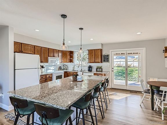 Immaculate tri-level home with a large lot in Trappers Green. This stunning residence boasts an effortless floor plan and impressive curb appeal. The living room includes a pellet stove fireplace for cozy winter nights and is just down from the spacious kitchen. The kitchen is well equipped with a grand center island, and granite countertops, perfect for entertaining. Upstairs hosts the large master bedroom, 2 more bedrooms and a full bathroom. The fully fenced serene backyard showcases beautiful landscaping. Warm up in the brand new hot tub on cooler Colorado nights and enjoy your morning cup of coffee on the covered deck with views of horse pasture and the foothills. This location is perfect for you as you enjoy the many walking/biking trails and ease to Bear Creek Park, 10 minutes to Red Rocks, tons of golf courses, restaurants, shopping, and easy access to the interstate as you head to the mountains for the weekend. Roof is brand new (2022), Furnace 5 years new.