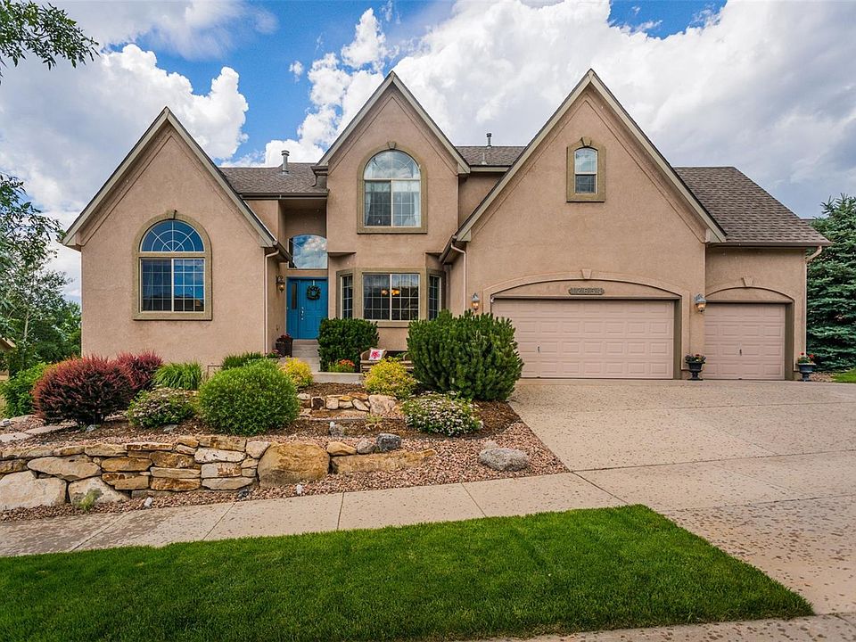Great home in a desirable neighborhood. Newly refinished wood floors in dining area, kitchen and entry* new granite counters in kitchen* main level master with fireplace* master bath has heated tile floors and a double sided fireplace*, pikes peak views from master, living room, kitchen and deck* Double sided gas fireplace in living room with rock face from floor to ceiling* all kitchen appliances included*gas cook top*laundry room with built in locker*all three upper bedrooms have walk in closets*one upper bedroom has private bath*jack and jill bath between other upper bedrooms*separate office with vaulted ceilings and a big window*walkout basement with wet bar and game room area*bedroom in basement with a large sewing/craft table and walk in closet for sewing/craft storage*large utility storage room with shelving*full bath in basement*family room in basement with surround sound*beautiful backyard with mature plants and trees*pond, waterfall and stream