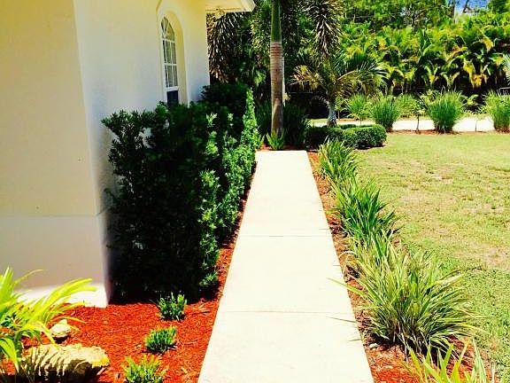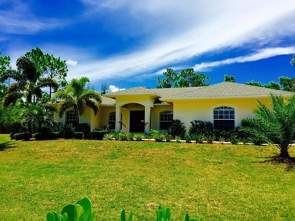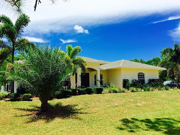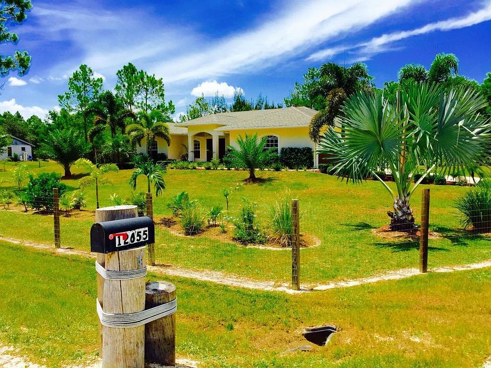 Amazing opportunity to own a private getaway! This beautiful CBS is one of kind and will not last long. All the tropical landscaping is done professionally and maintained. This property is fully fenced in and on 1.25 acre lot with additional privacy as is located at the end of the road. The property is already wired with a security camera & alarm system, cable, and internet. The home has new stainless steel appliances, wood & tile floors , wooden deck which connects to the driveway, screen in patio and fire pit for your outdoor entertainment, Cathedral ceilings, pavers on the front porch, new gutters, hurricane shutters, and water system.