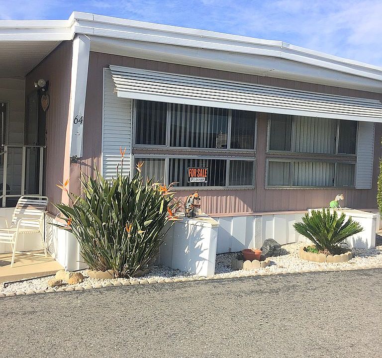 Spacious 2 bedroom 1 bathroom home ready to move-in or renovate, in Caravan Estates, a quiet 55+ community. Spacious patio with 2 car carport and 2 sheds. There is nice sunroom addition off the the living room. It has a rear door to the back yard, which has plenty space for a barbecue and entertaining. This back patio also has an enclosed laundry are with washer and dryer included. There is also a nice work bench for the handyman. The living room is open to the dining room, which has a nice built-in hutch. The kitchen has plenty of storage & a built-in microwave and pantry. There is also a side door, and a small porch. There are ceiling fans in both living and dining room. There is a full bathroom with tub/shower. The spacious master bedroom easily fits a queen size bed, has a walk-in closet, ceiling fan and separate window AC. The second bedroom can be set up as a guest room. The low rent controlled space rent is $336. Just installed a new 24.000 BTU mini-split AC and heater, which cools and heats the entire home. The refrigerator is just 2 years old. 1096 sq ft with sunroom addition. Price is $95,000 OBO.
